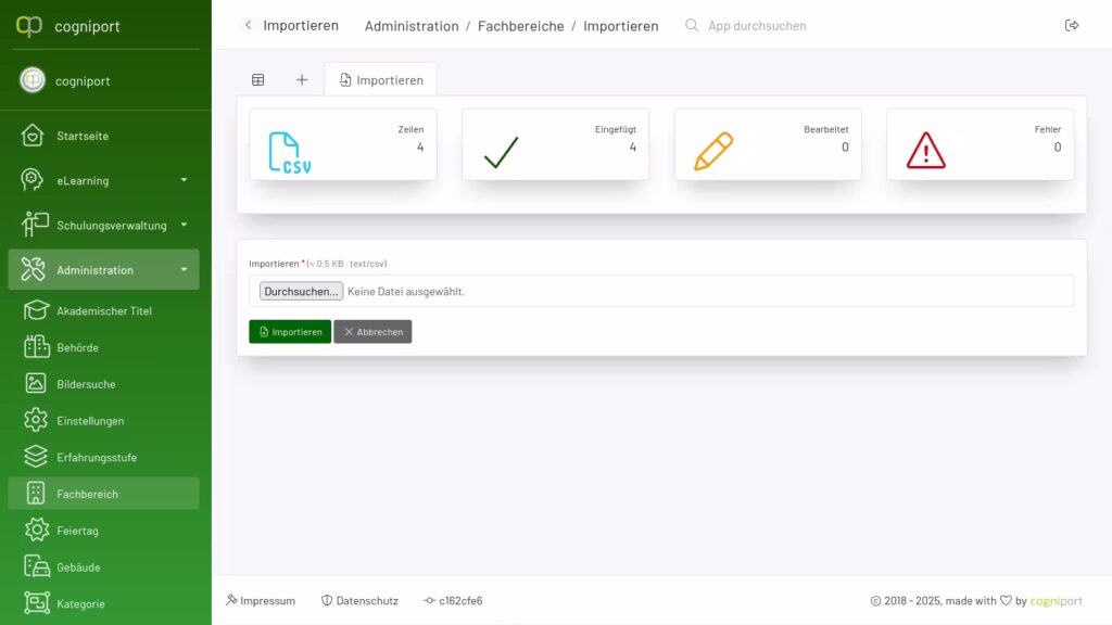 Wählen Sie nun den Punkt Importieren aus und das Portal führt den Import durch. Sollten Sie doch nicht importieren wollen, wählen Sie die Schaltfläche Abbrechen aus und Sie gelangen in die Übersicht.