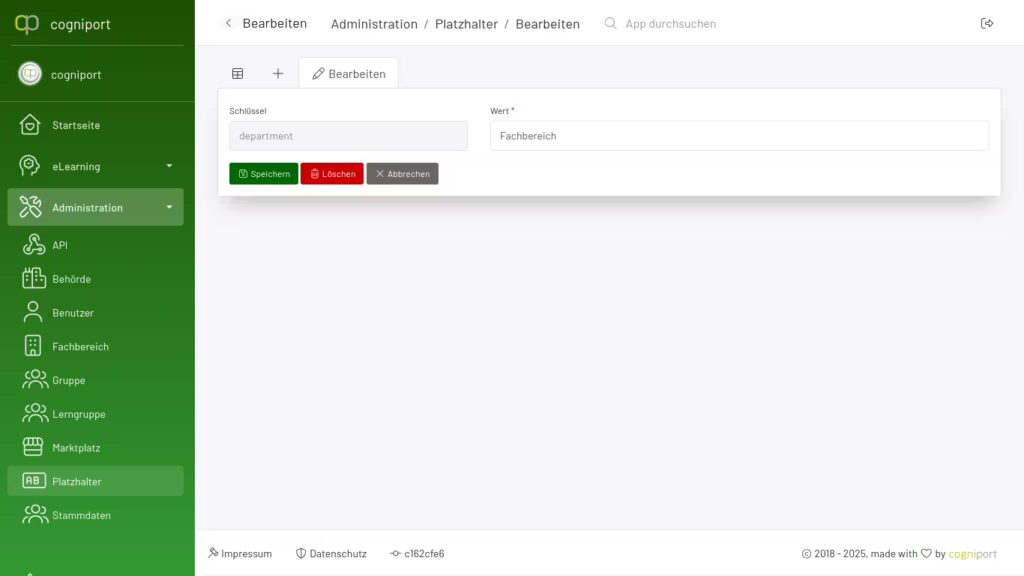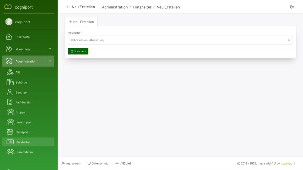 Um einen Platzhalter zu erstellen, melden Sie sich als Unternehmensadministrator im Bildungsportal an und navigieren zu Administration > Platzhalter: