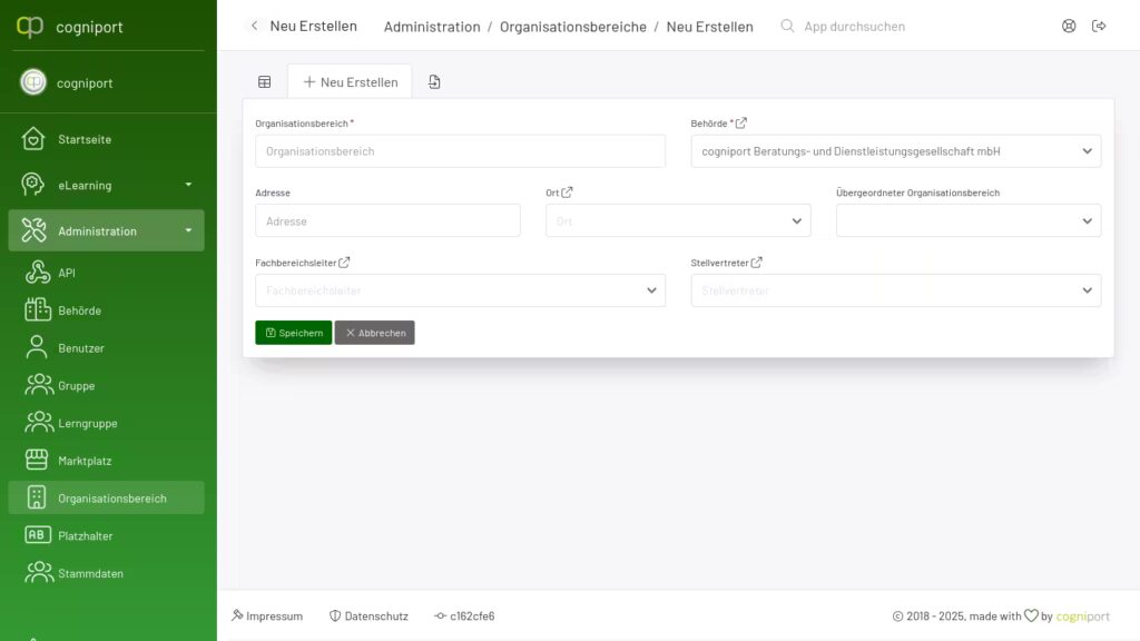 Sie sehen im Beispiel, dass der Platzhalter für Fachbereich bearbeitet wird. Wir werden in dieser Anleitung den Fachbereich in Organisationseinheit umbenennen:
