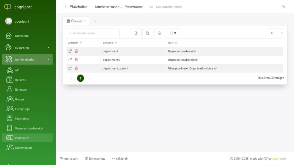 In unserem Bildungsportal haben Unternehmensadministratoren die Möglichkeit, Platzhalter zu nutzen, um Begriffe individuell anzupassen. Wir haben viel Zeit und Sorgfalt darauf verwendet, die Standardbegriffe so passend wie möglich zu wählen. Dennoch kann es vorkommen, dass einzelne Begriffe nicht immer optimal zur eigenen Verwaltung passen. Genau hier kommen die Platzhalter ins Spiel: Sie ermöglichen es, Begriffe nach den Bedürfnissen Ihres Unternehmens anzupassen. Platzhalter sind flexible Begriffe, die im Portal verwendet werden und später durch verwaltungsspezifische Begriffe ersetzt werden können. So können beispielsweise „Kurs“, „Lernpfad“ oder „Fachbereich“ durch Begriffe ersetzt werden, die in Ihrer Organisation besser verstanden werden.